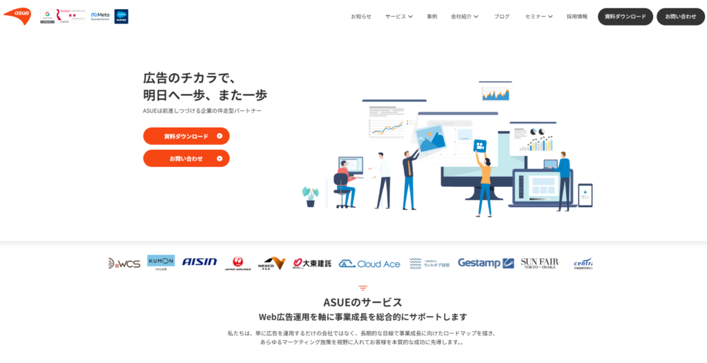 ASUE株式会社は、Web広告運用を中核に、企業のマーケティング課題を総合的に解決するデジタルマーケティング企業です。